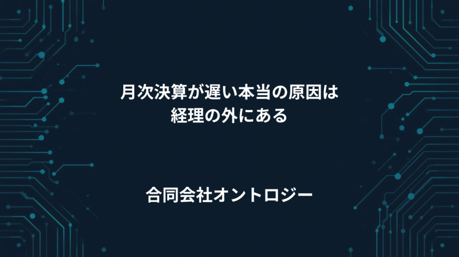 月次が遅い本当の原因は、経理の外にある。経理担当者がどれだけ頑張っても、上流の情報の流れが変わらない限り月次は早まらない。「なぜ月次が遅いのか」という問いの向け先を、人から構造に変えることが、改善の第一歩だ。